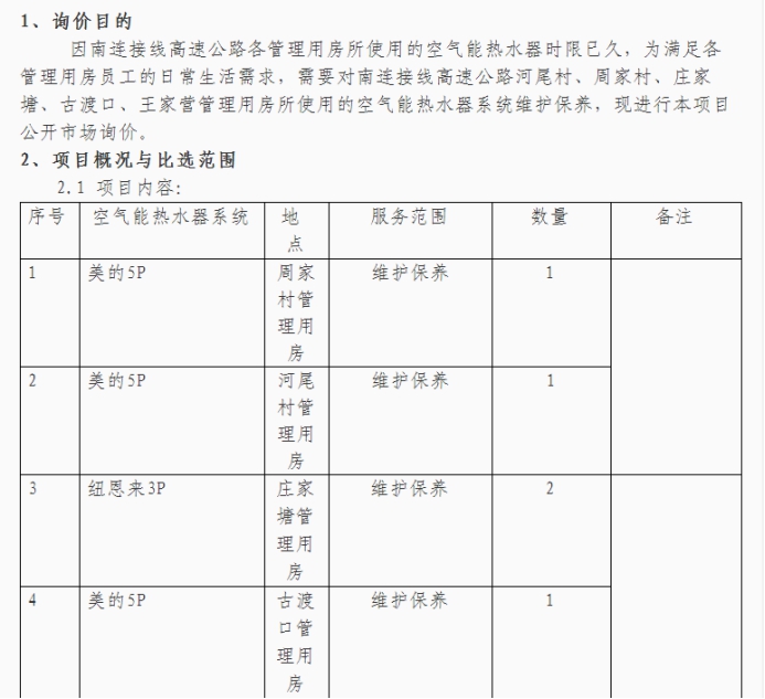 昆明元朔建设发展有限公司空气能热水器系统维护保养市场询价公告(二次)